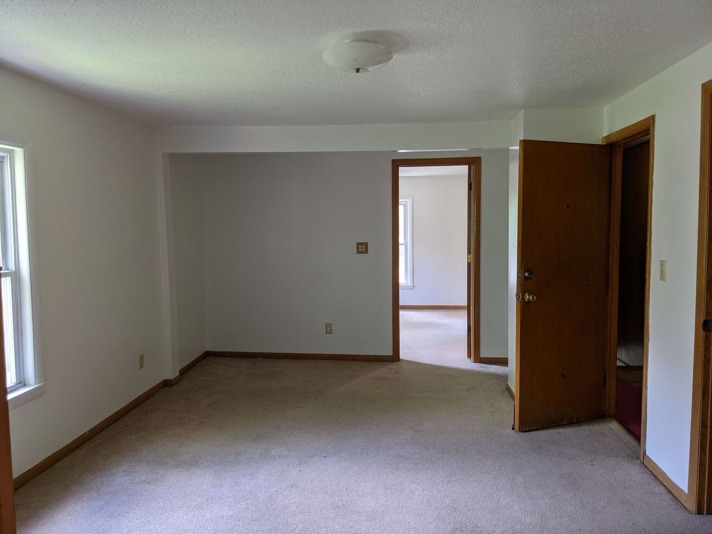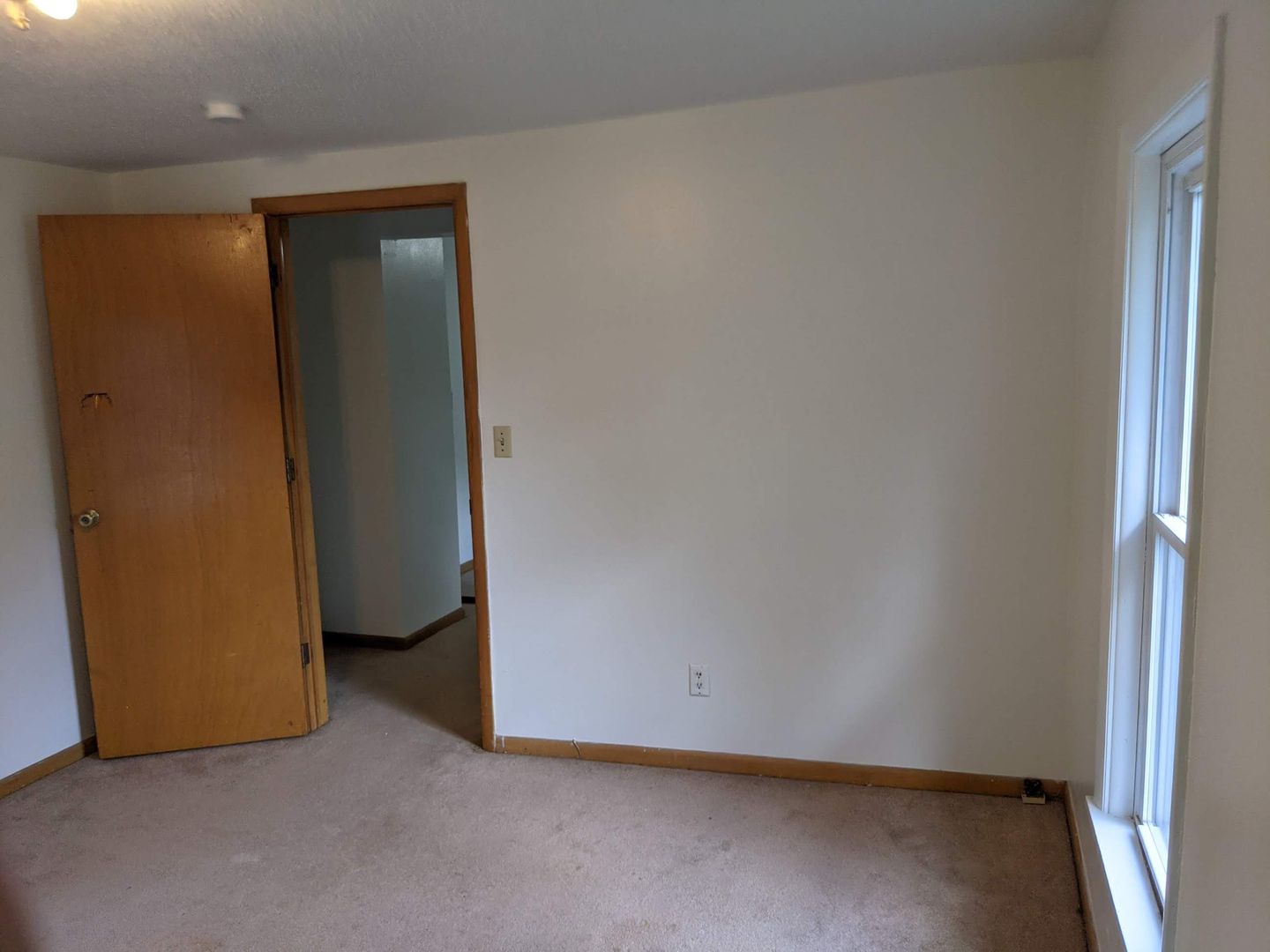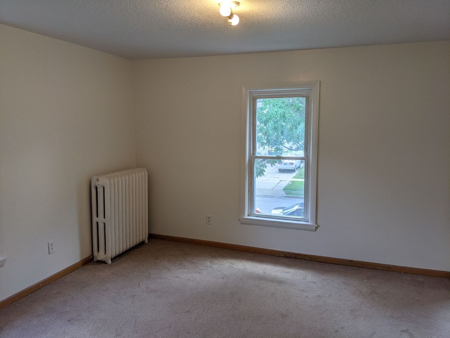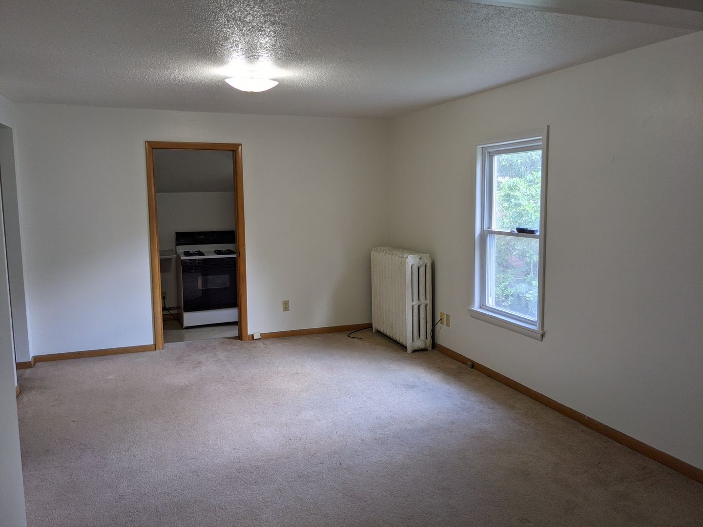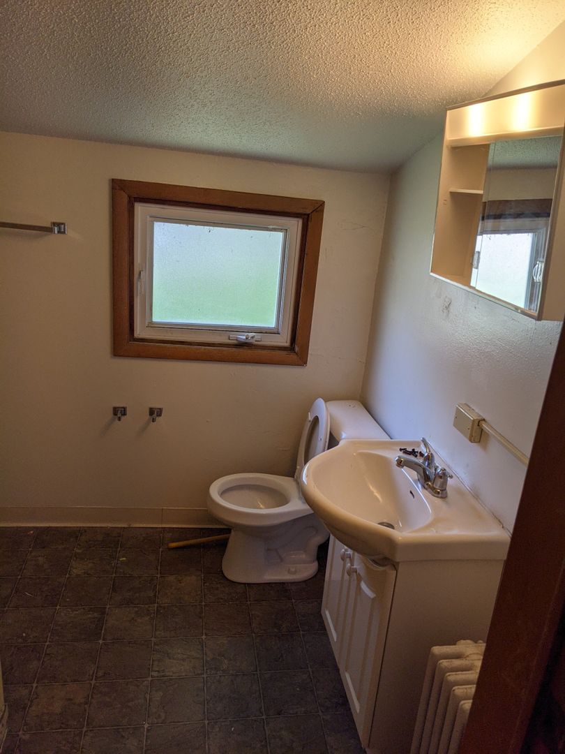 This 1-bedroom, 1-bath apartment occupies the entire half of the upstairs section of this home. It has a separate bedroom and closet that face south, enhancing the space's natural light. The large living room is 17'1" by 11'8"! Gas stove and refrigerator are included. Stand-up shower. Bedroom 11'9" x 11'6". 1 off-street parking space in the alley included in rent. Landlord handles lawn care and snow removal.